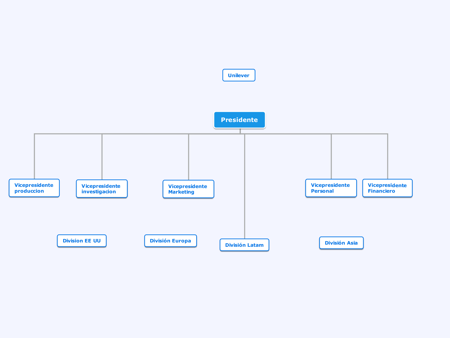 En el presente ejemplo, cada sección geográfica cuenta con presidente, vice y directorio ejecutivo en cada país.. Las plantas industriales cuenta con su Director General y las gerencias de RRHH,FINANZAS, DESARROLLO, DISTRIBUCIÓN CALIDAD,MANTENIMIENTO,PRODUCCIÓN, INGENIERIA , MARKETING.
